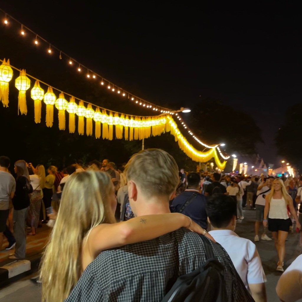 Being in the city for this occasion was absolutely beautiful, and although we didn’t leave Chiang Mai itself to light our own lanterns, being in the city was a treat. Strolling around watching the Krathongs float down the rivers, sampling the busy street food stalls, and bumping into so many friendly faces, had me smiling ear to ear. We even stumbled into an odd event at an investment bank serving free Thai food – Pad Thai, papaya salad, and the most amazing coconut milk pancakes. It didn’t matter that we had just had dinner, we made a dent in all the above and it was a delight! After our food we needed to dance it off, so we headed to Zoe, much like all other backpackers, and celebrated the handsome Becketts birthday in style. The light festival and surrounding atmosphere really made me feel as though I’d visited two entirely separate Chaing Mais, and I loved both.