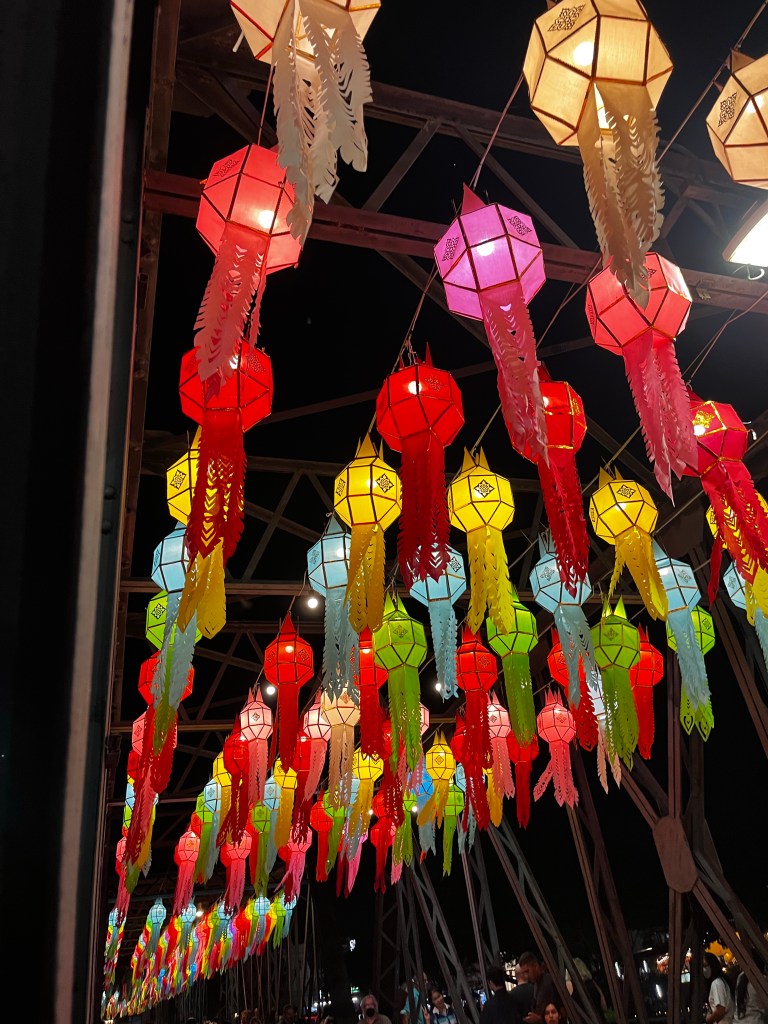 Arriving back to Chiang Mai was like coming back to an entirely different city. The slow streets were replaced by bustling crowds, beeping horns, and the occasional rouge fire cracker being released in the complete chaos. Cafes which I had passed with one of two tables had queues of hungry guests waiting for free tables, previously Tuktuk lined streets were empty, and their tuktuks near impossible to track down. The city was alive with people, and with light. Taking place between the 8-11th of November, the festival celebrates the full moon, releasing lanterns into the sky, and small floats called Krathongs down the river in thanks to the Goddess of Water.