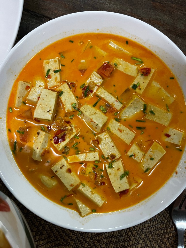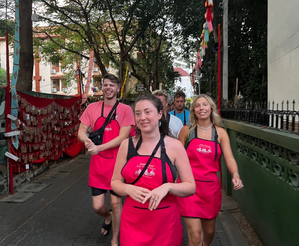 Because you only turn 24 once, we all decided to gift Beckett a chance to prove his hand over a wok in one of the best cooking schools Chiang Mai has to offer. Full of excitement (and very hungry) we set off for an evening at Asia Scenic cooking school, all eight of us ready for a new experience. We arrived to a tour of the local market where we were shown all the ingredients we would be using and how to pick the best produce for our dishes. We were then shown all the traditional Thai herbs and vegetables grown in the schools organic garden (tasting raw Thai ginger has a real kick- beware!). Our evening involved cooking five Thai dishes of our choosing; a stir fry, a soup, a curry paste, curry, and spring rolls. It was a good thing we came hungry, that was for sure. I opted for a tofu Kra Prow, or Holy Basil, for the sole reason it is one of my beautiful friend Sorel’s favorite dishes, and next time we are together I am determined to cook her up my very own. Smashing the herbs and spices and chopping the vegetables was both satisfying and hilarious, laughing at each other’s errors and instruction misinterpretation. However, after a fun filled 30 minutes, we sat down to enjoy our very own Kaprows, Pad Thais, and Pad See Ews. I’m not sure wether mine was actually the best I have ever had, or the fact my own hands had made it taste so good. Next up we made Tom Yum soup, which I have had before and wasn’t a fan- but this changed my mind. A sweet and sour but spicy broth with a real kick, so unusual yet so delicious.