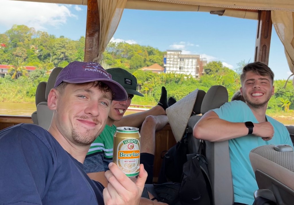 Arriving into the Port at Luang Prabang we were greeted by a ‘police party’, offered beers and welcomed warmly to our next stop. For two whole days, the slow journey to Luang Prabang was my favorite one yet. The importance of slow travel is taking in everything, the changes of landscape and scenery as you venture from one country to another makes it worth the time taken. A one hour flight drops you in the midst of all the change, a two day slow boat eases you in, gifting you the experience as a bonus. For anyone who has Loas on their agenda, if time allows, I personally think the slow boat is the only way to get there. An insight into the Loas culture and life on the Mekong, surrounded by spectacular landscapes all around. The people on the boat are a plus, and enjoying the experience together is something I am happily ticking off my bucket list, and will come back to time and time again for the happy memory.