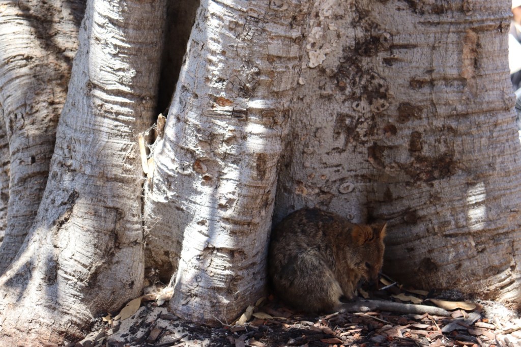On the ferry ride to the island from Freemantle, Harry and I sat out the back of the boat, and already we knew we were in for the most amazing day. From about 10 minutes out from the island, the crystal clear waters evidenced the corals and rock formations in the depths. Trying to spy sharks or whales, we hung over the edge, pure fascination on our faces as we gazed into the clearest waters I have ever seen. Arriving to the main marina, we rented bikes and set off on our adventure, wheeling in and out through bustling crowds of holiday makers. No cars are allowed on Rottnest, so the winding roads were littered in cyclists and walkers. Our first stop was Little Paraket Bay, and it was stunning. Snow white sands and clear blue waters welcomed us to our first swim on the island. All thirteen of us spread across the beach, covered in suncream and embracing the warm sun. Rottnest is surrounded by a ring reef, making it a safe place to swim away from the surrounding sharks. Regardless of the fact we all knew this, it didn’t stop the litany of shark jokes, most of which saw dad as the victim, mistaken as a great white. After making rough plans on where to meet, we split up and headed off on our way. Stopping for some food, we got to meet the islands locals, the Qoukkas. The strangest little animals I have ever seen, the little rodents look like a cross between a rat and a kangaroo, and they have quite the personalities. Hopping up on picnickers laps and trying to steal an odd sandwich, they were funny little creatures for sure. Littered across the island, often close to the tourist spots to steal some food, they were a funny sight as we travelled across the island.